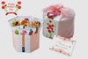かわいらしく個性の光る美味しいあられ・お煎餅を「花」「水」「緑」3種の小袋に詰合せた人気商品です。