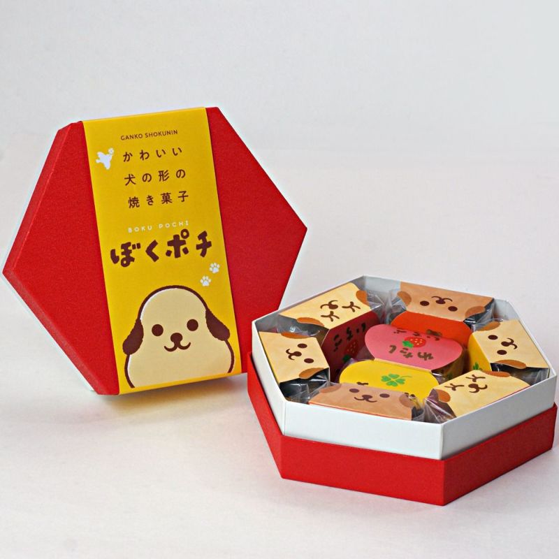 ぼくポチシリーズ8個入 六角箱 (ポチ・くろ・いちご)