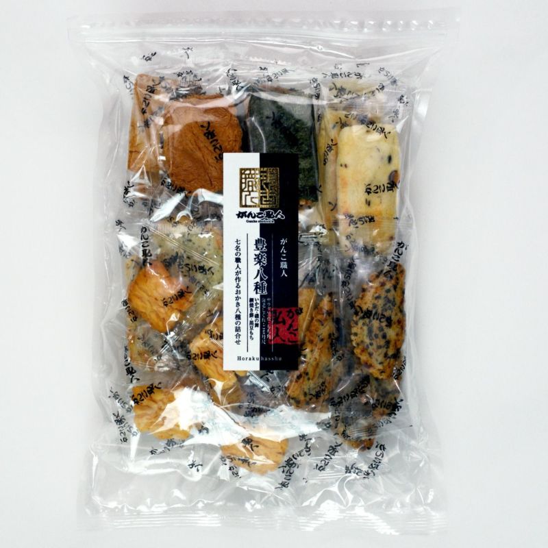 がんこ職人でも売れ筋の7名の職人が作るおかき8種を詰合せました。さまざまな味や食感を楽しめます。ひとつ、ひとつ個別包装しております。