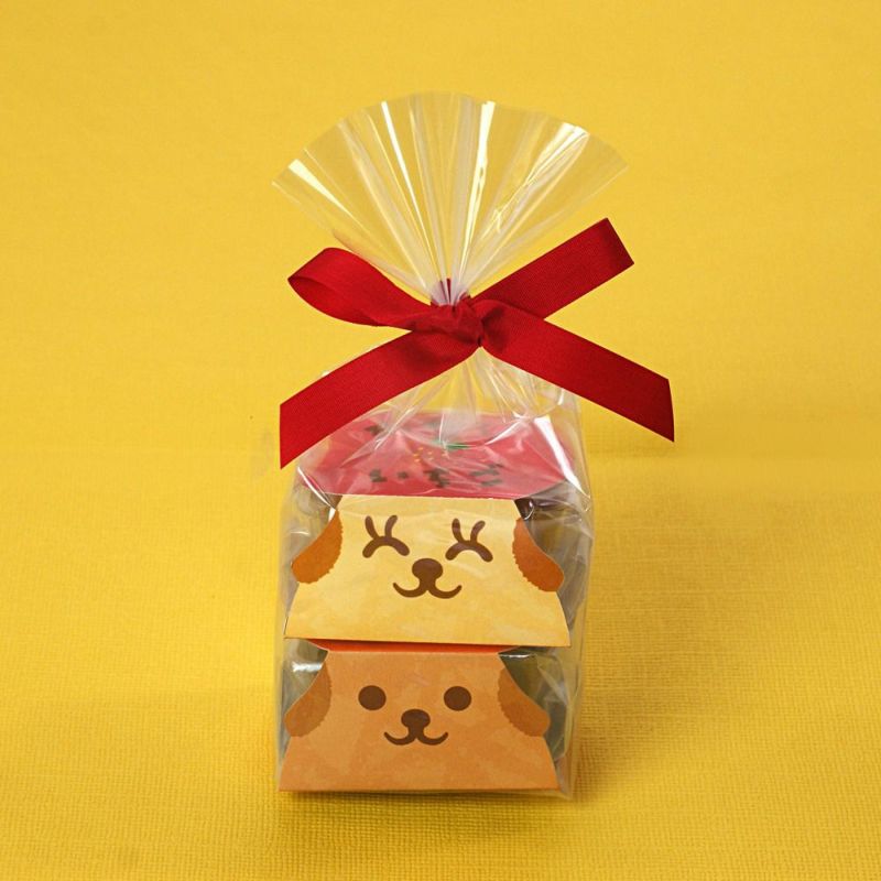 かわいい犬の形の焼き菓子「おらくろ」「わたしいちご」が入ったプチギフトです。(オンラインショップ限定のラッピングです)