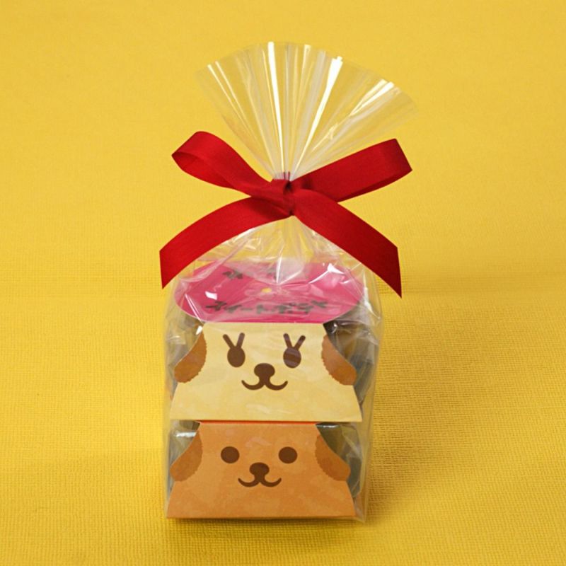 かわいい犬の形の焼き菓子「おらくろ」「わたしスイートポテト」が入ったプチギフトです。(オンラインショップ限定のラッピングです)