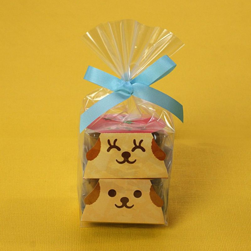 かわいい犬の形の焼き菓子「ぼくポチ」「わたしいちご」が入ったプチギフトです。(オンラインショップ限定のラッピングです)