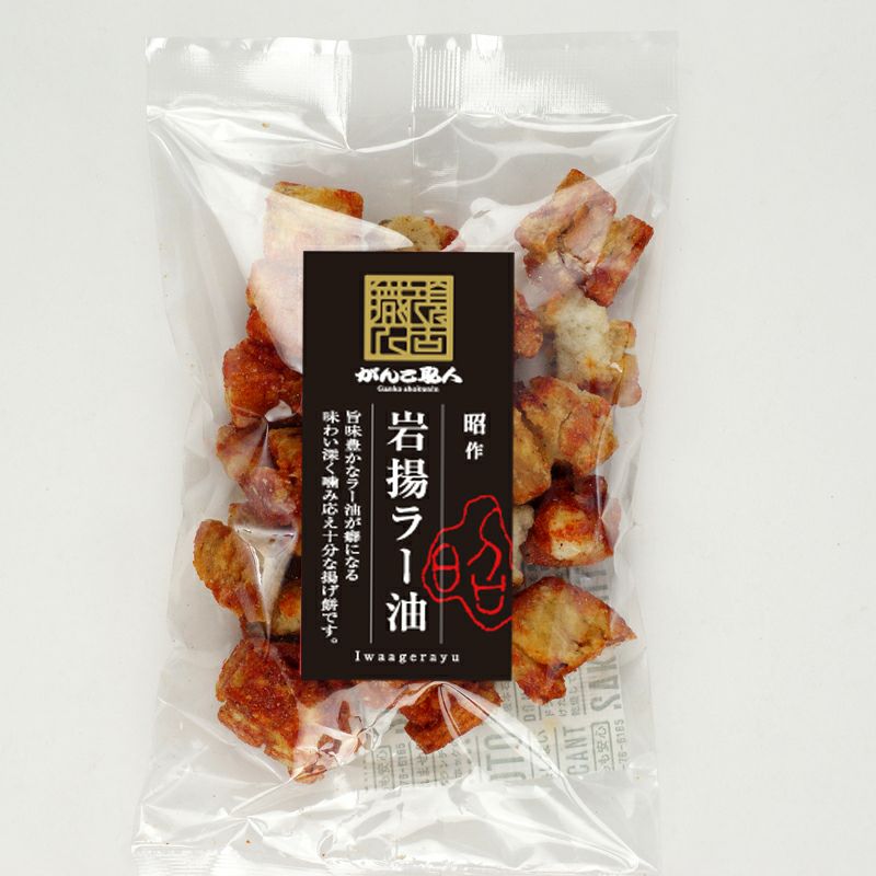 歯ごたえのある食感で人気の揚げ餅「岩揚」 に、風味豊かなラー油で味付けをしました。
